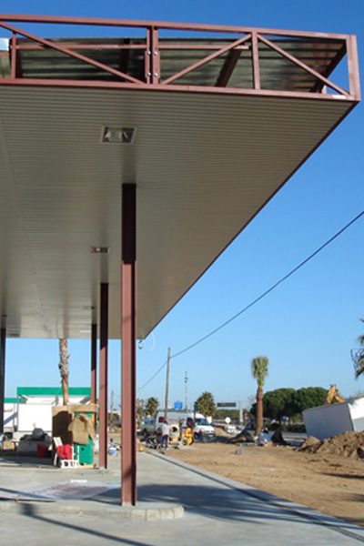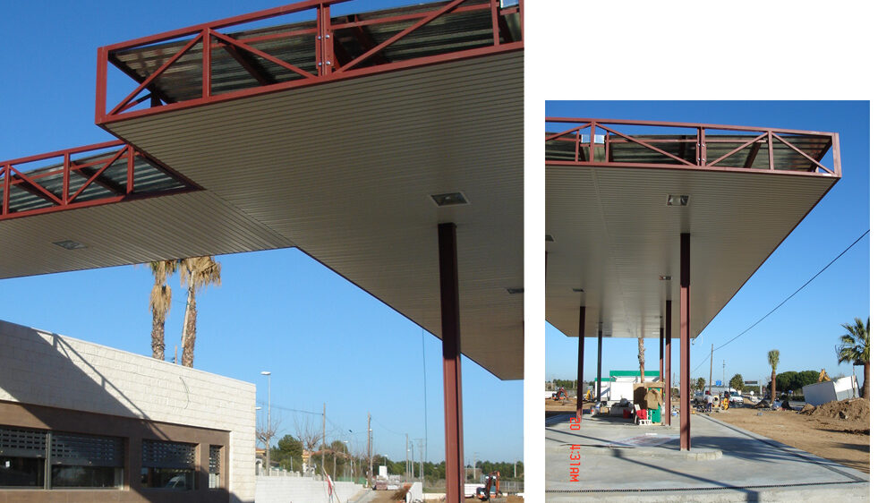 Este proyecto fue un encargo cuyo propietario nos dio plena libertad a la hora de diseñar la estación. Había un proyecto técnico previo y nuestro estudio realizo un proyecto de diseño y un estudio de circulaciones que acabo siendo lo que es en la actualidad. El elemento verde es fundamental y está presente en todo el terreno ayudando a crear circulaciones de paso y acceso. Con esto, conseguimos bajar la temperatura del terreno y crear un ambiente más agradable y fresco.