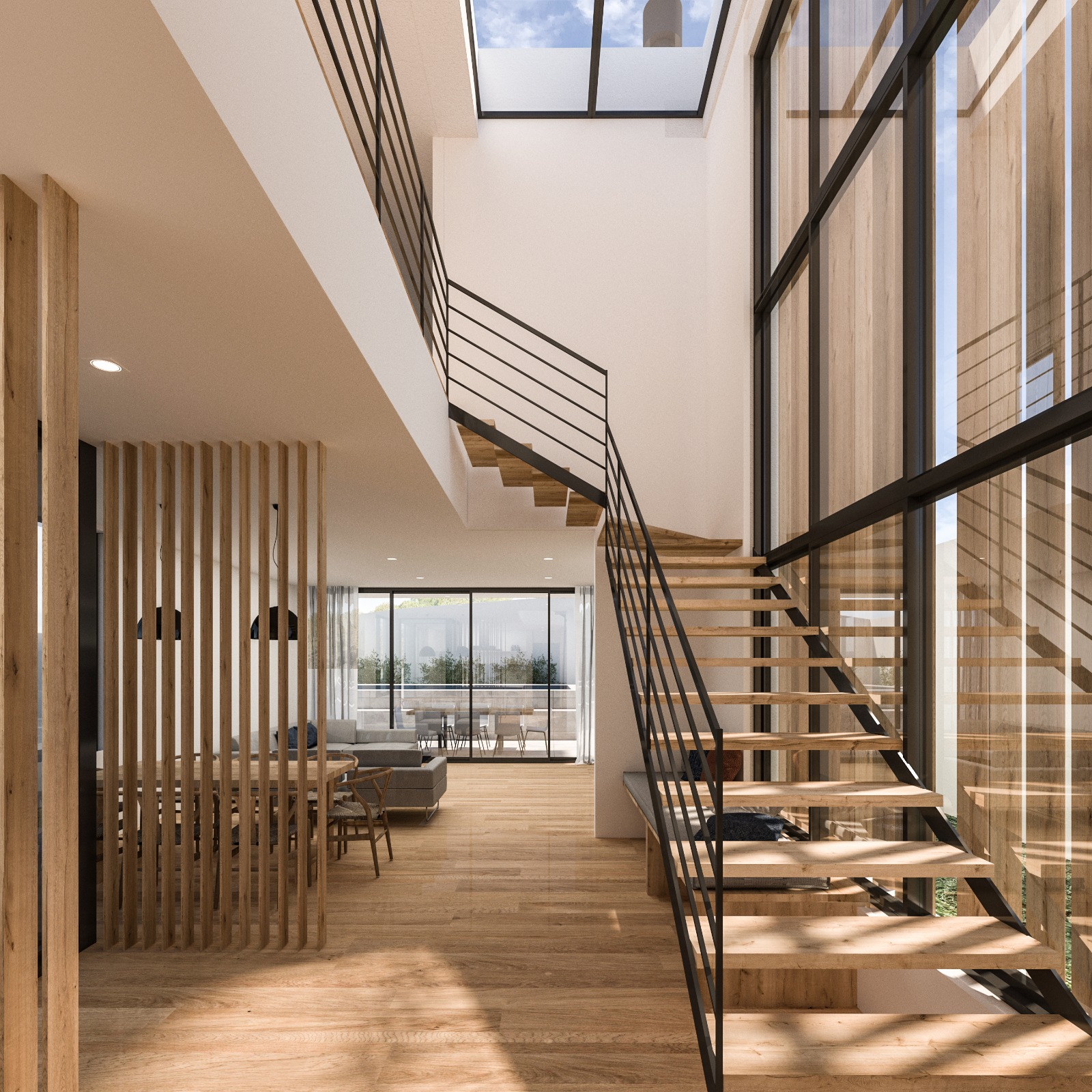 El resultado es una vivienda contemporánea, luminosa y funcional, donde el diseño interior y la elección de materiales modernos refuerzan la sensación de amplitud y confort.