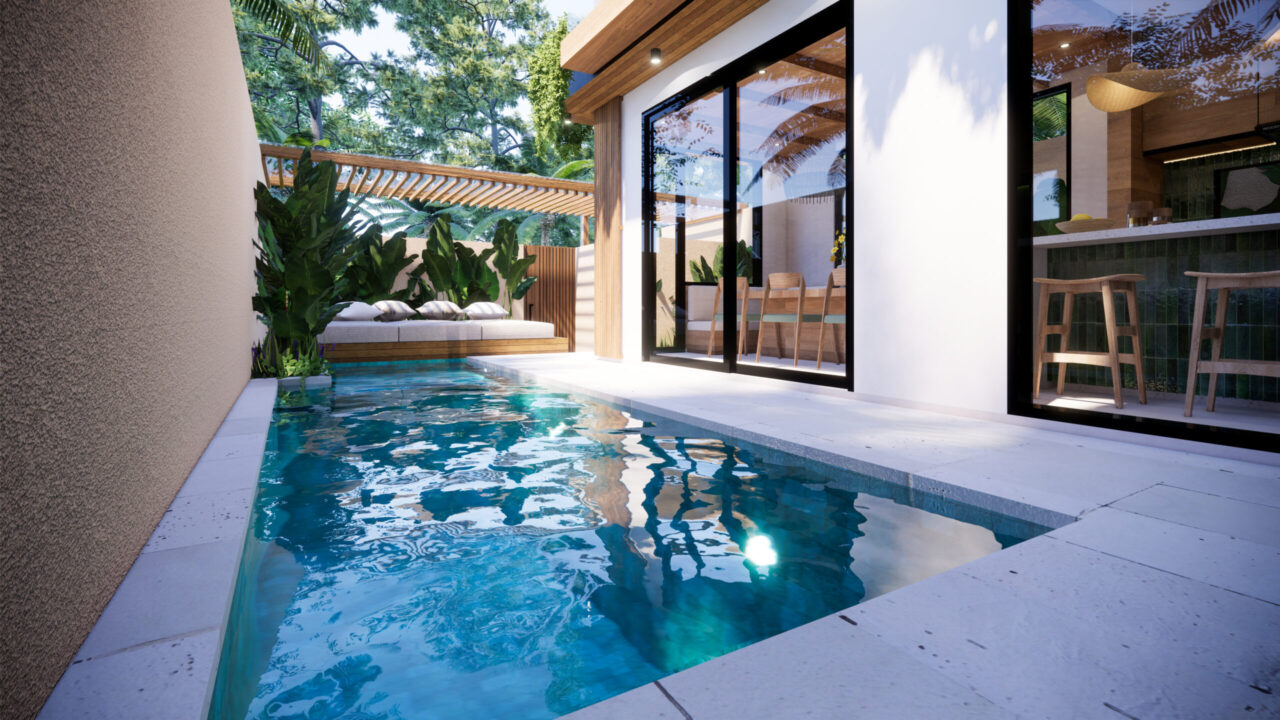 El proyecto se compone de villas unifamiliares de dos plantas, de estilo tropical contemporáneo, ubicadas en Bali (Indonesia).